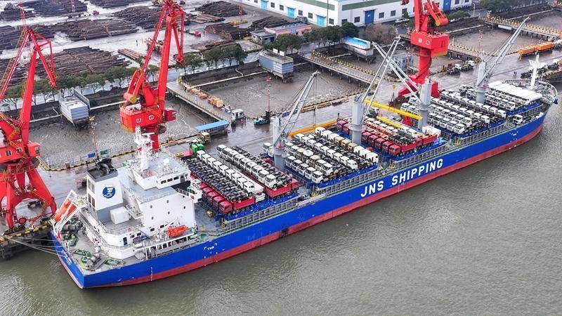 一批卡车从张家港港装船出口神牛资讯。张家港海事局供图